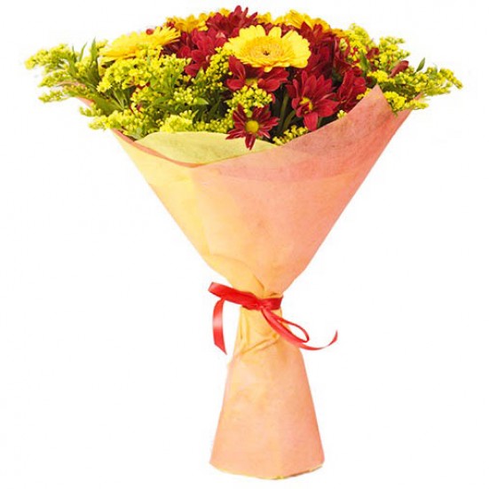 Букет «5 гербер, 5 хризантем, 5 солидаго» в Новороссийске