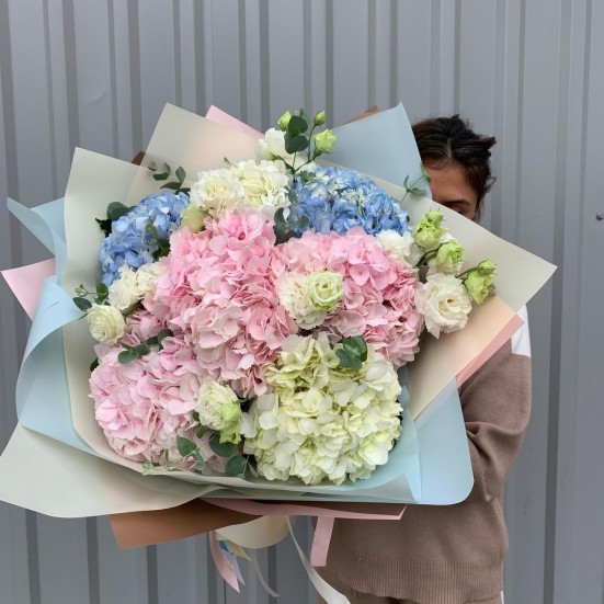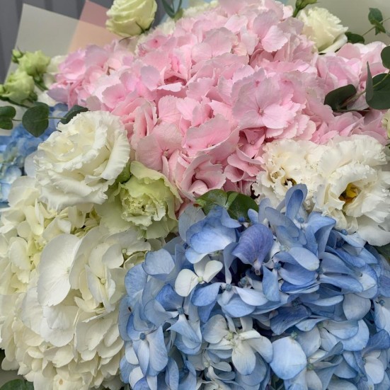 Букет с гортензией и эустомой в Новороссийске
