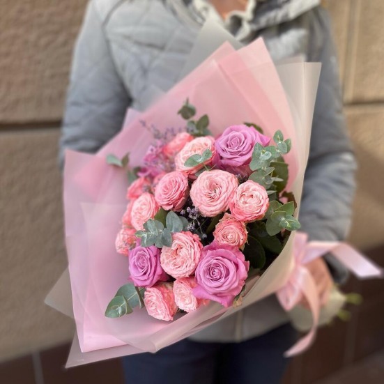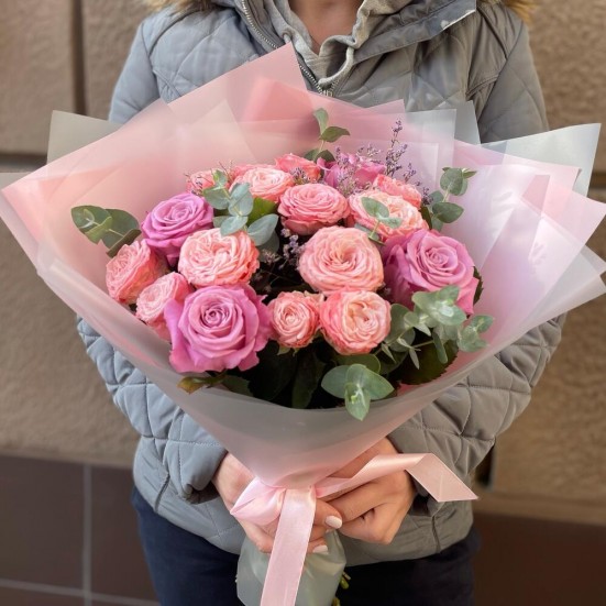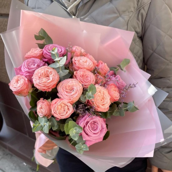 Букет «Пионовидных роз с эвкалиптом» в Новороссийске