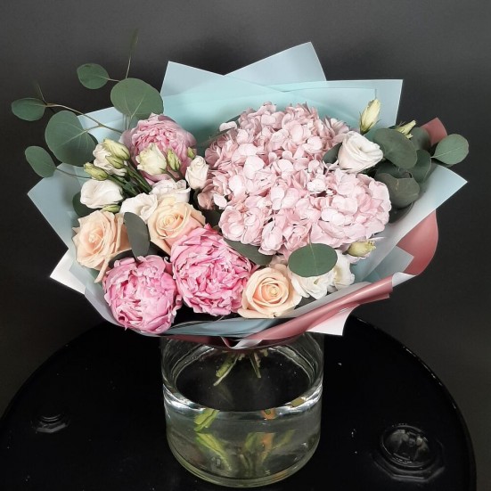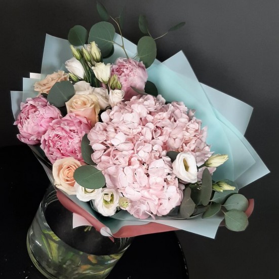 Букет «Розы, пионы и гортензия» в Новороссийске